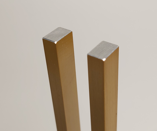 The drawback of tuning anodized forks is the removal of the anodized coating on the end of the tines. This not only detracts from the visual appearance but also results in sharp edges which require an additional process of de-burring to make it safe for handling. This additional de-burring can then influence the tuning.