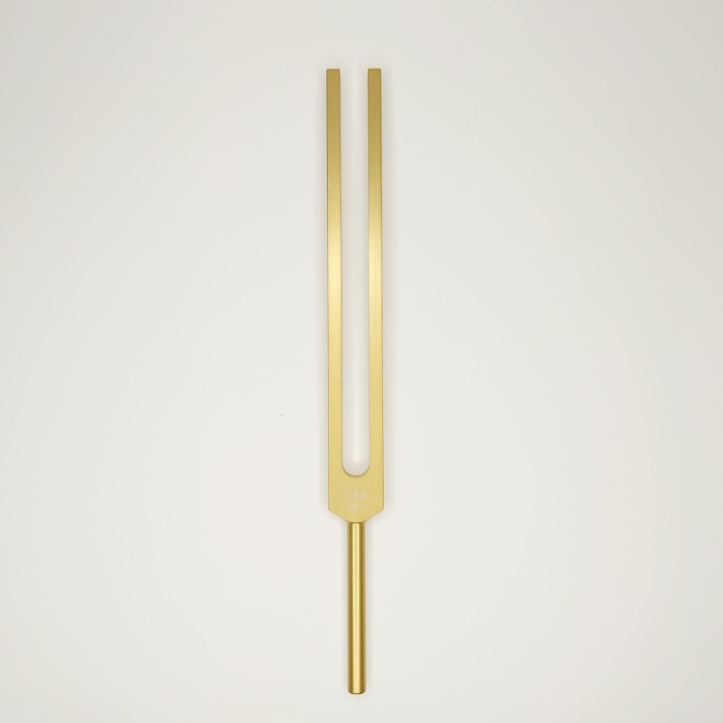 This fork is gold anodized with serial number engraved. Included with each fork is a certificate of tuning, which shows exact tuning frequency and the temperature at which this specific fork was tuned.
