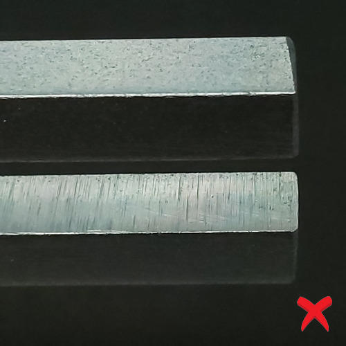 Note on the image to the right the vertical sanding lines found on poor quality forks. The lines can be seen to slope at an angle and not be perfectly vertical.